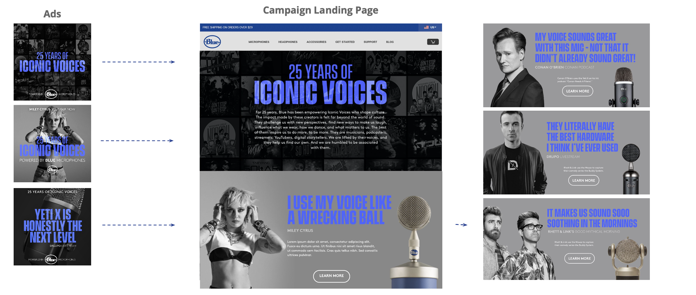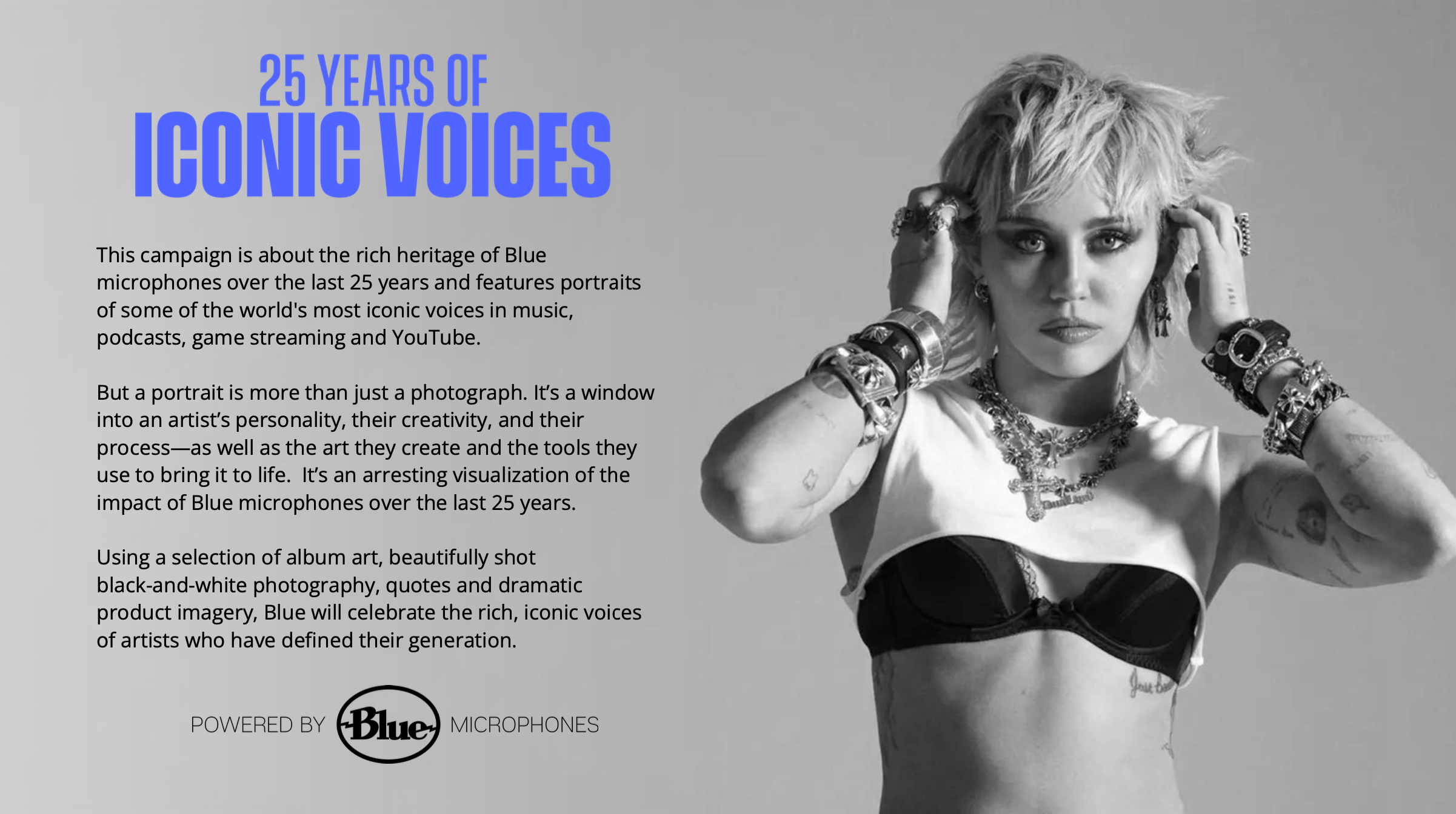 Turned Blue Microphones from a product into the standard behind the voices people trust, linking cultural output back to the tool that made it.